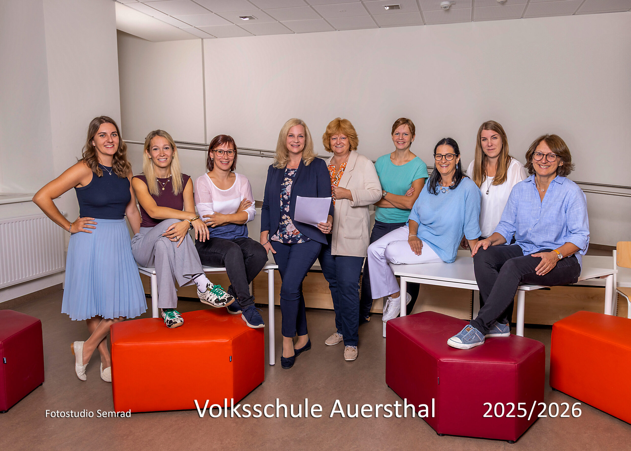 v.l.n.r. Raphaela Baader (Klassenlehrerin 3. Klasse), Desiree Krainberger (BuS, Förderung), Eva-Maria Hörwey (Teamlehrerin 2b), Claudia Pawlik (Schulleitung), Michaela Schneider (Klassenlehrerin 4. Klasse), Maria Wittmann (Sprachförderung), Manuela Müllner (Klassenlehrerin 2a), Nina Suchodolski (Klassenlehrerin 2b), Ulrike Kaiser (Klassenlehrerin 1. Klasse)